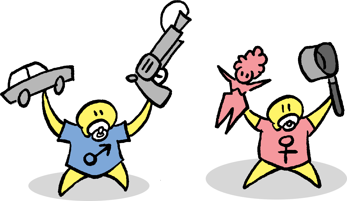Dans les magasins, les jouets des filles et ceux des garçons sont le plus souvent séparés. Pour les garçons, il peut être difficile de jouer avec une dînette ou une poussette rose... Et les filles reçoivent peu de tracteurs en cadeau. Est-ce que c'est dans le cerveau des filles de préférer les poupées et dans celui des garçons d'aimer les voitures ? Non, cela s'apprend, dès tout petit.